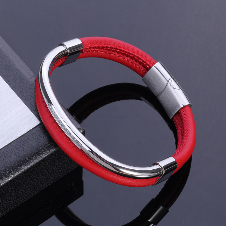 316L Stainless steel Genuine Leather Unisex Bracelet TNB2401-D