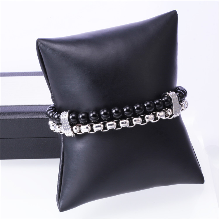 Stainless Steel Onyx Bead Bracelet TNB2746-C